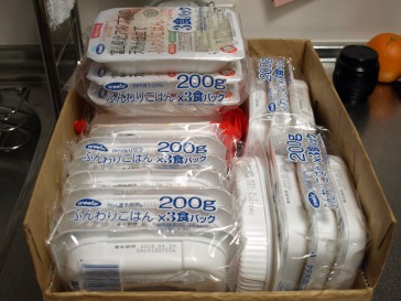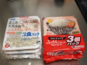 レンジでチンするタイプのご飯(非常時はカセットコンロで加熱予定)が非常時の主食になる予定です。